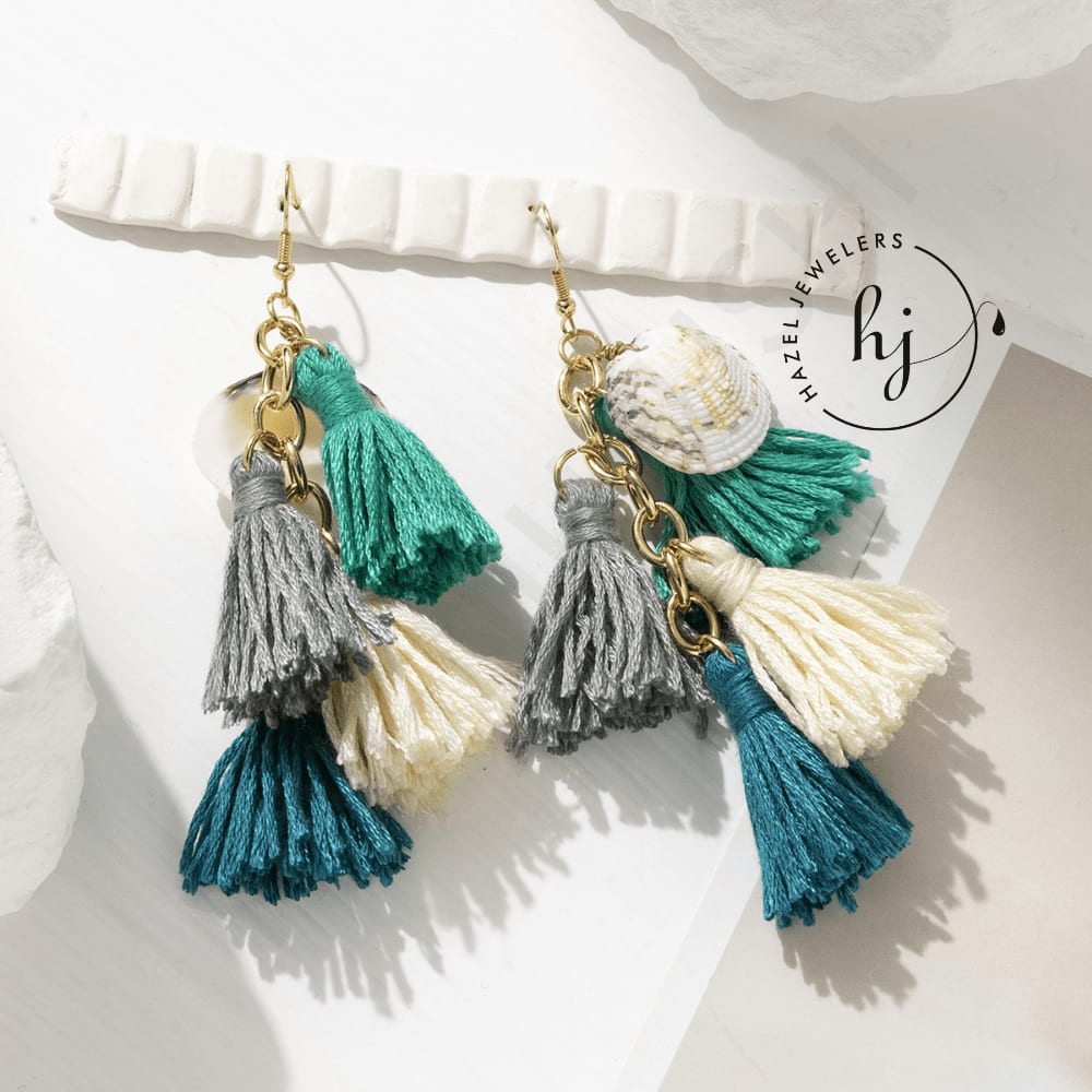 Unique Fringe Boho Earrings With Sea Shell Decor