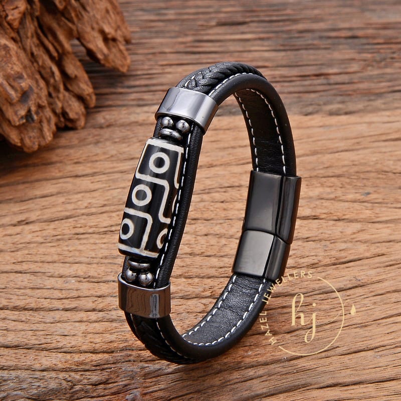 Tibetan Leather Bracelet with Titanium Steel
